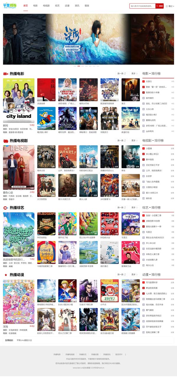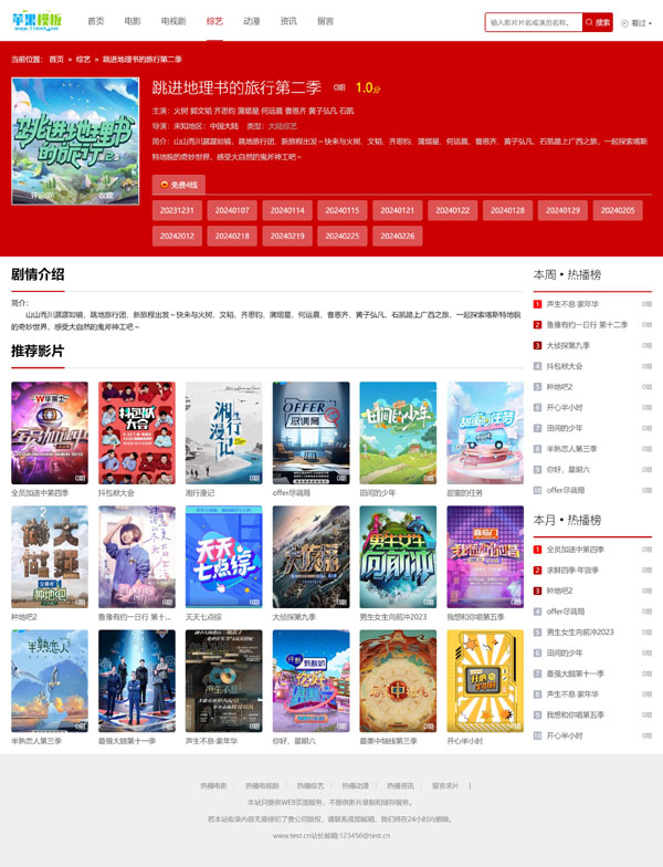 如果下载不了,请点击这里【下载说明】,如果下载后,不知道如何更换苹果cms10模板,请点击这里【苹果cms模板安装图文教程】超级详细,每一个操作步骤都有说明。另外,需要声明红色大气影视网站自适应模板5号仅供学习和研究,请勿将该模板进行商业交易、转载、违法运营等行为,该模板使用后发生的一切问题与本站无关。若侵犯了您的权益,请联系我们予以删除!