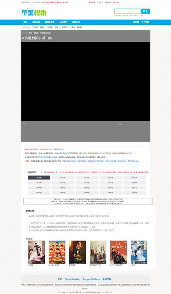如果下载不了,请点击这里【下载说明】,如果下载后,不知道如何更换苹果cms10模板,请点击这里【苹果cms模板安装图文教程】超级详细,每一个操作步骤都有说明。另外,需要声明蓝色经典影视网站pc/wap双端模板7号仅供学习和研究,请勿将该模板进行商业交易、转载、违法运营等行为,该模板使用后发生的一切问题与本站无关。若侵犯了您的权益,请联系我们予以删除!