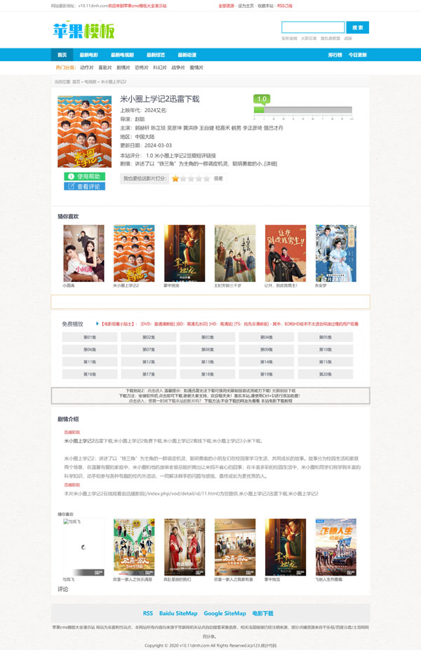 如果下载不了,请点击这里【下载说明】,如果下载后,不知道如何更换苹果cms10模板,请点击这里【苹果cms模板安装图文教程】超级详细,每一个操作步骤都有说明。另外,需要声明蓝色经典影视网站pc/wap双端模板7号仅供学习和研究,请勿将该模板进行商业交易、转载、违法运营等行为,该模板使用后发生的一切问题与本站无关。若侵犯了您的权益,请联系我们予以删除!