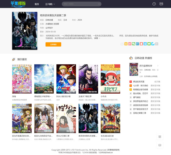如果下载不了,请点击这里【下载说明】,如果下载后,不知道如何更换苹果cms10模板,请点击这里【苹果cms模板安装图文教程】超级详细,每一个操作步骤都有说明。另外,需要声明白色大气影视网站自适应模板14号仅供学习和研究,请勿将该模板进行商业交易、转载、违法运营等行为,该模板使用后发生的一切问题与本站无关。若侵犯了您的权益,请联系我们予以删除!