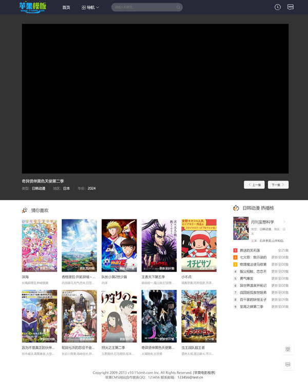 本模板是在,上次发布了黑色大气影视网站自适应模板23号基础上改进而来。在保留之前模板特色,左侧内容详情,右侧排行榜的设计外,并加入了次级导航栏,方便用户更快的查找。最大区别是将原本黑色次级导航栏,优化为了白色效果,使之更加醒目。